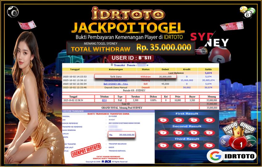 IDRTOTO BAYAR LUNAS JACKPOT PERMAINAN TOGEL SYDNEY LOTTO Rp.35.000.000 – LUNAS
