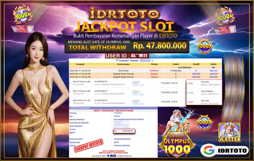 IDRTOTO JACKPOT PERMAINAN SLOT GATES OF OLYMPUS 1000 Rp.47.800.000 – LUNAS