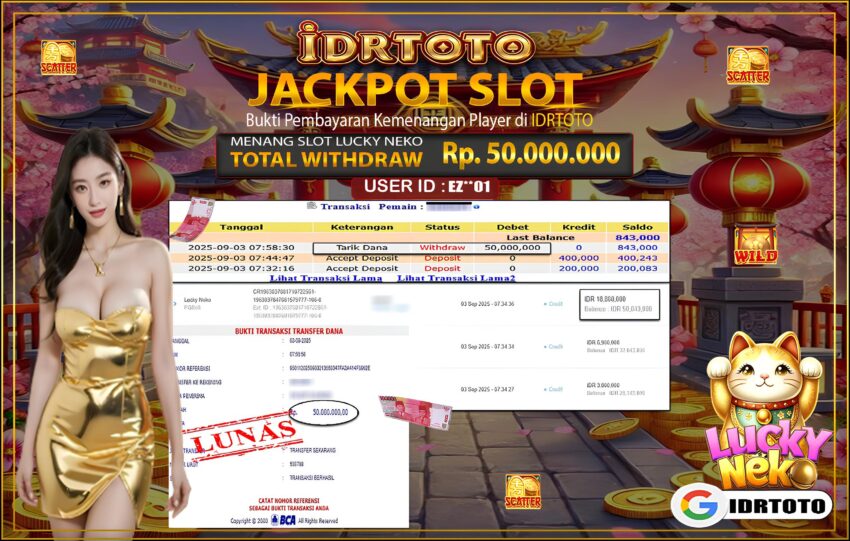 IDRTOTO BAYAR LUNAS JACKPOT PERMAINAN SLOT LUCKY NEKO Rp.50.000.,000 – LUNAS