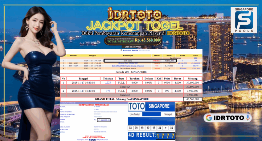 IDRTOTO BAYAR LUNAS JACKPOT PERMAINAN TOGEL SINGAPORE POOLS Rp.43.560.000 – LUNAS