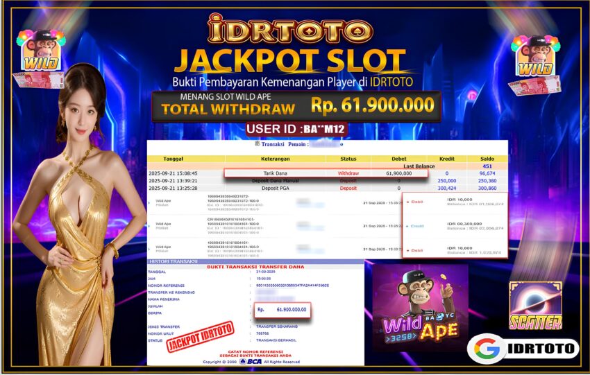 IDRTOTO BAYAR LUNAS JACKPOT PERMAINAN WILD APE WAYS 1 Rp.61.900.000 – LUNAS