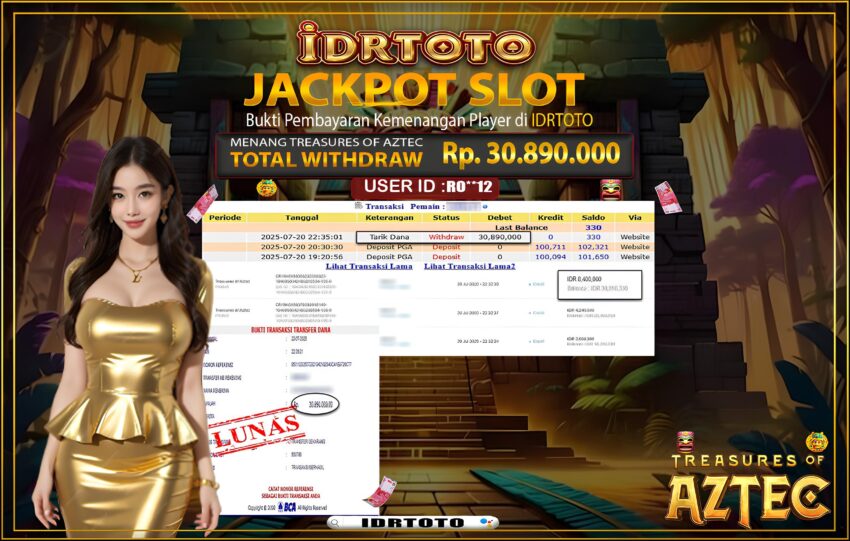 IDRTOTO JACKPOT SLOT TREASURES OF AZTEC Rp.30.890.000- LUNAS